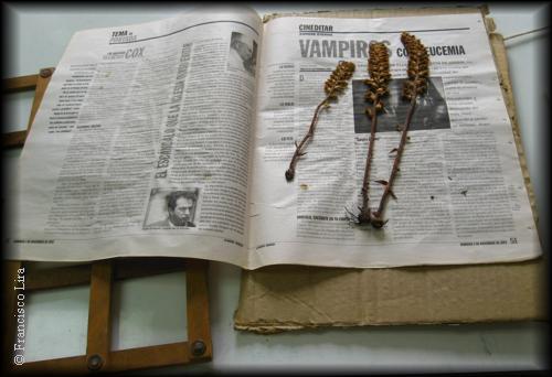 Se amontonan varias plantas de la misma forma; debe quedar la secuencia: cartón-planta-cartón-planta-cartón-planta...cartón. Todo el paquete se pone entre dos prensas de madera o una pila de libros. |