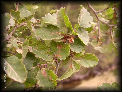 | Follaje característico de Nothofagus antarctica, Ñirre. Cordillera de Nahuelbuta, Región del Bío Bío. | ||||||||||||